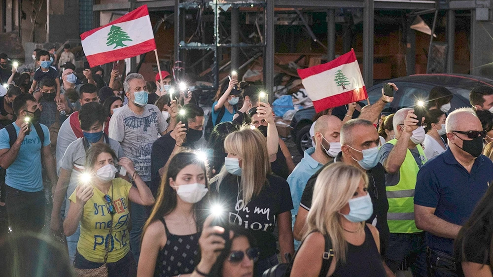 Người dân Lebanon biểu tình phản đối chính phủ sau vụ nổ. Ảnh: AL JAZEERA
