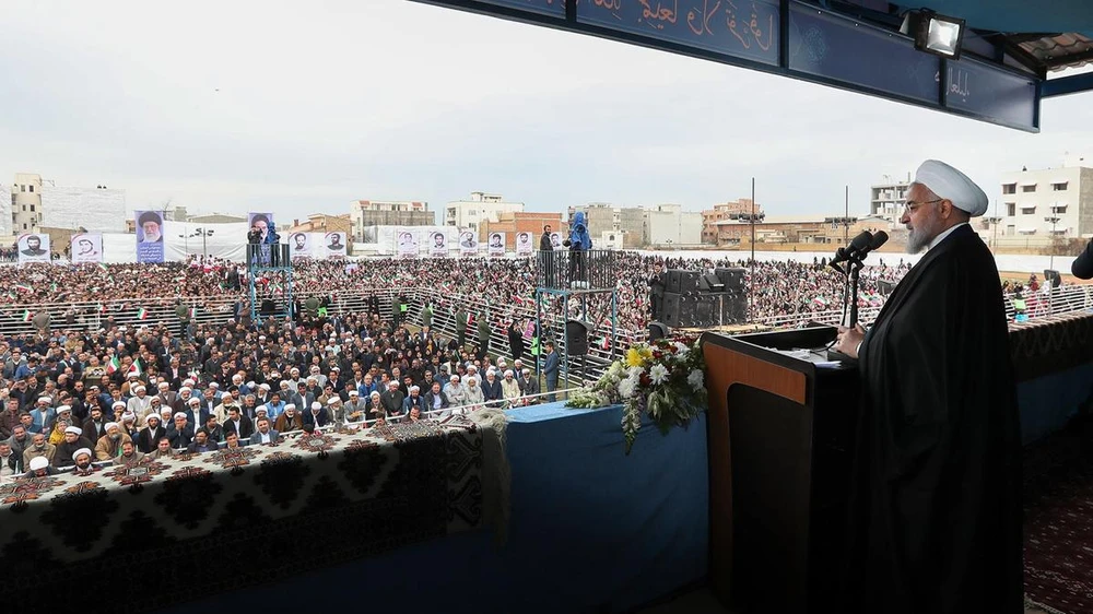 Tổng thống Iran Hassan Rouhani phát biểu tại một sự kiện. Ảnh: THE NATIONAL