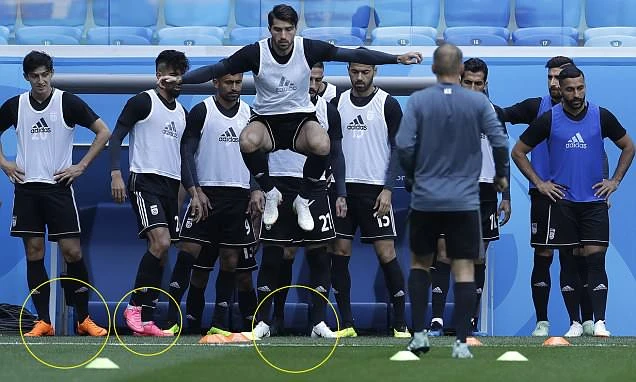 Các cầu thủ Iran vẫn có người mang giày Nike trong lúc tập luyện.