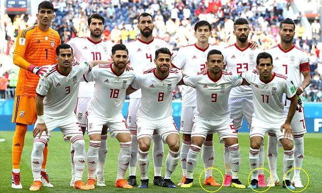 Trong trận đấu mở màn bảng B với Morocco, có ba cầu thủ Iran gồm Sardar Azmoun, Masoud Shojaei và Ramin Rezaeian vẫn mang giày Nike thi đấu. Trước đó, người ta thấy một số cầu thủ vẫn mang giày Nike tập luyện nhưng những cầu thủ này phải mua chúng từ các cửa hàng thể thao tại Nga.