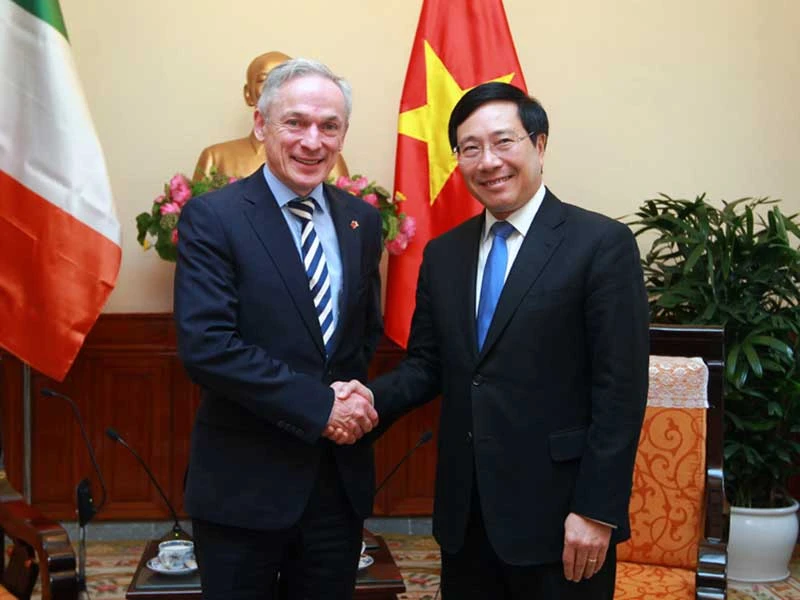 Phó Thủ tướng, Bộ trưởng Ngoại giao Phạm Bình Minh và Bộ trưởng Giáo dục và Kỹ năng Ireland Richard Bruton. Ảnh: VGP/HẢI MINH