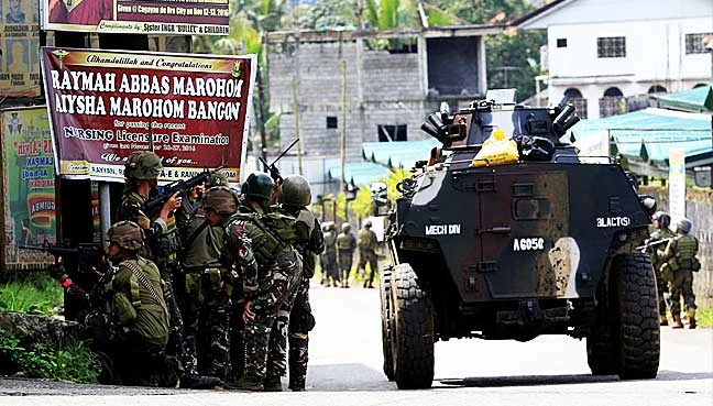 Lực lượng quân đội Philippines hiện vẫn đang giao tranh với phiến quân IS tại thị trấn Pigcawayan. Ảnh: AFP
