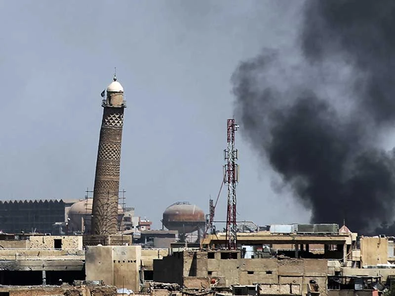 Đền al-Nuri được xây vào năm 1172. Baghdadi đã tuyên bố là “quốc vương” của IS tại bục giảng của đền thờ này vào ngày 4-7-2014. Lá cờ đen của nhóm phiến quân đã được treo trên tháp nghiêng al-Hadba kể từ tháng 6 cùng năm. Các hình ảnh của quân đội Iraq cho thấy đền thờ và tòa tháp trên đã gần như bị san phẳng hoàn toàn, nằm giữa các ngôi nhà nhỏ của khu phố cổ.