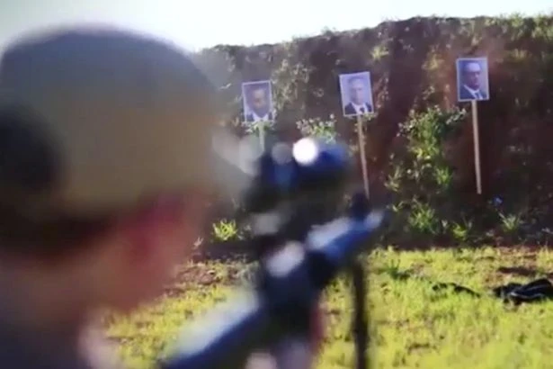 Hình ảnh trong video cho thấy các chiến binh nhí của IS tập bắn với mục tiêu là ảnh của các nhà lãnh đạo thế giới. (Nguồn: Mirror)