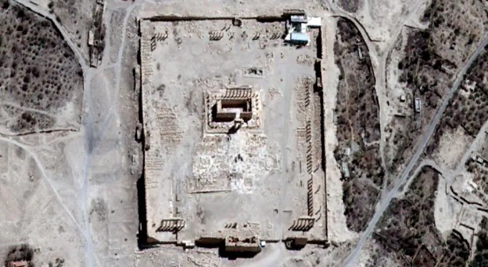 Hình ảnh được chụp từ vệ tinh hôm 31-8-2015 cho thấy ngôi đền cổ Bel đã bị IS phá hủy. (Ảnh: AFP)