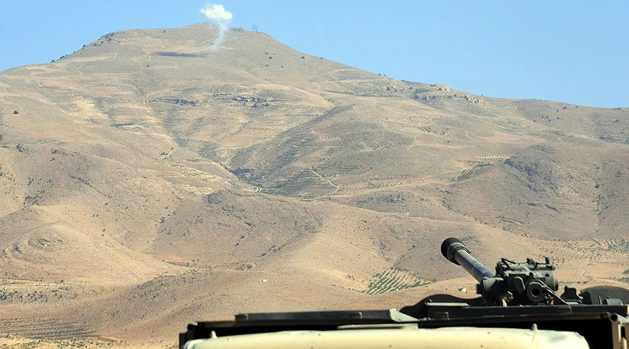Khói bốc lên từ một vị trí của IS ở vùng Qalamoun, Syria hôm 2608. Ảnh: RT