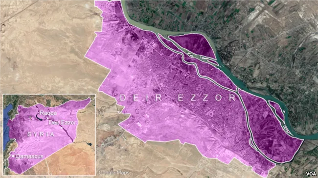 Bản đồ thành phố Deir el-Zour của Syria. Ảnh: VOA