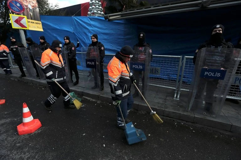Cảnh sát Thổ Nhĩ Kỳ bảo vệ hiện trường bên ngoài hộp đêm Reina sau vụ tấn công. Ảnh: REUTERS