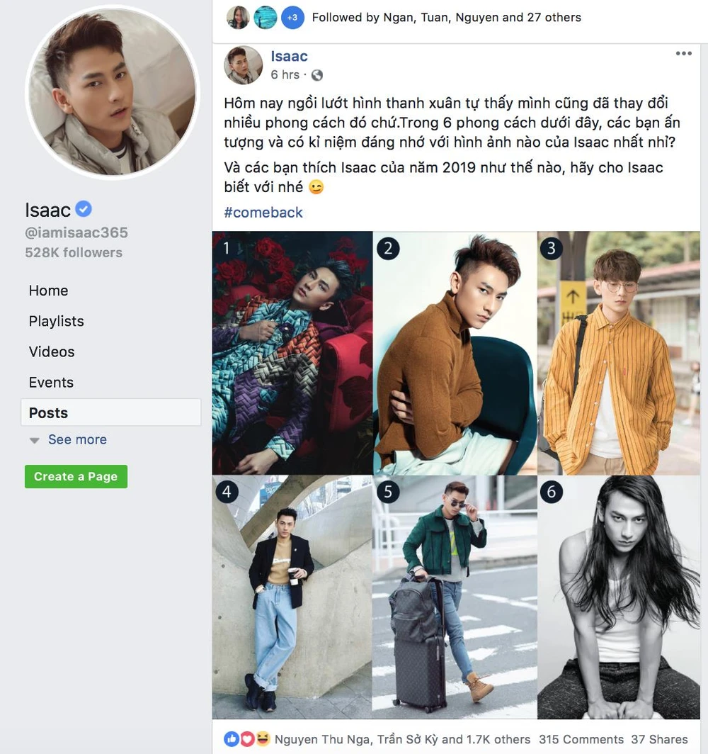Những hình ảnh anh chia sẻ trên fanpage được cộng đồng mạng yêu thích và bình chọn. Có thể thấy từ sáu khoảnh khắc đắt giá trong hành trình trở thành một ngôi sao, giọng ca Mr. Right đã chứng minh được khả năng biến hoá đủ phong cách, từ một quý ông lạnh lùng cho đến style thư sinh lãng tử, thậm chí có thời điểm Isaac làm bấn loạn vì chất nổi loạn được bùng phát.