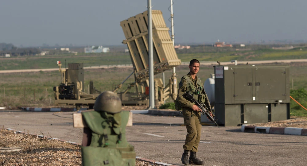 Binh lính Israel bảo vệ hệ thống phòng thủ tên lửa Iron Dome được triển khai tại vùng Golan Heights gần biên giới với Syria vào ngày 20-1-2015. Ảnh: SPUTNIK
