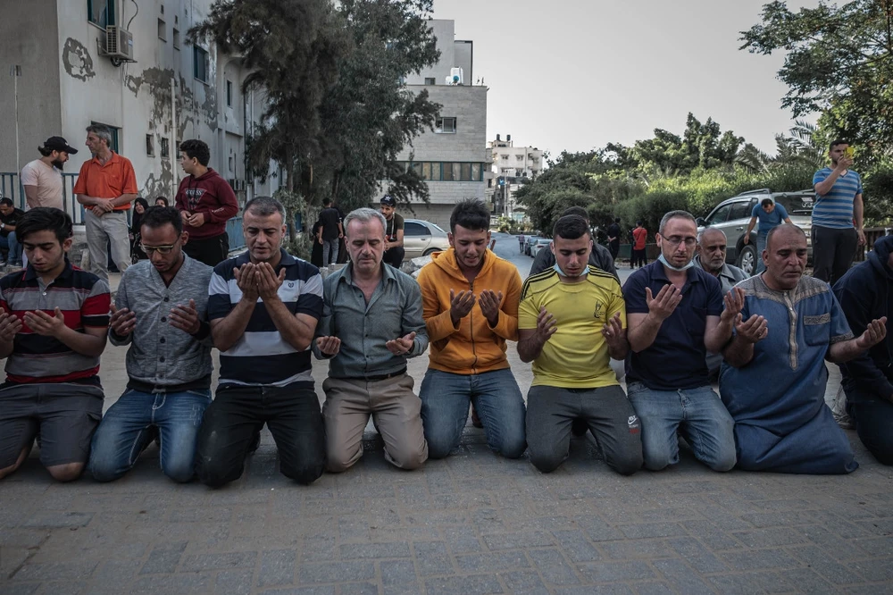Người dân Palestine cầu nguyện cho nạn nhân thiệt mạng tại Dải Gaza. Ảnh: GETTY IMAGES