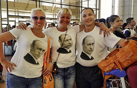 Du khách Nga tập trung tại sân bay Sharm el-Sheikh (Ai Cập) để về nước. Ảnh: AP