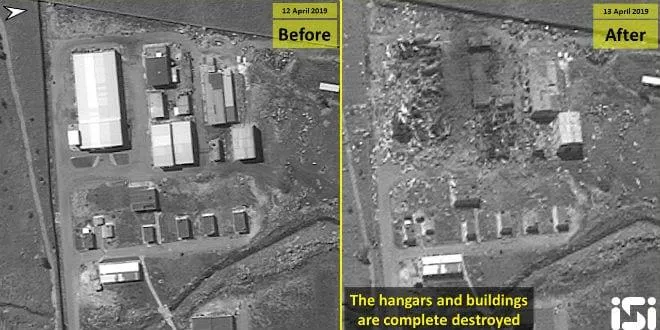 Công ty ảnh vệ tinh Image Sat International (ISI) của Israel đã công bố những hình ảnh vệ tinh về các cơ sở ở Masyaf trước và sau cuộc tấn công hôm 13-4. Theo ISI, một cơ sở bị cáo buộc sản xuất tên lửa đất đối đất bị hư hỏng nghiêm trọng sau vụ không kích của Israel. Cơ sở này tọa lạc gần các cơ sở quân sự khác có liên hệ với dự án tên lửa của Iran ở Syria.