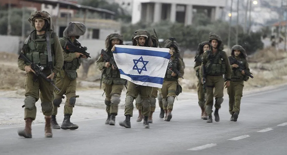 Binh sĩ Israel cầm quốc kỳ khi đi tuần tra. Ảnh: AFP