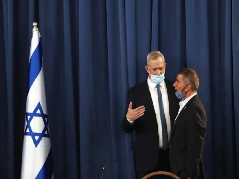 Bộ trưởng Quốc phòng Israel Benny Gantz (trái) trò chuyện với Ngoại trưởng Israel Gabi Ashkenazi bên lề cuộc họp nội các hôm 31-5. Ảnh: AFP