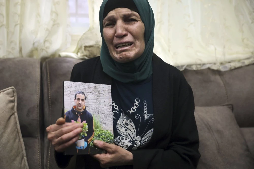 Mẹ của nam thanh niên Iyad Halak cầm di ảnh của anh hôm 30-5 - ngày anh bị bắn chết. Ảnh: AP
