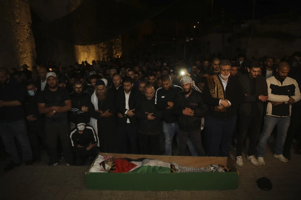 Hàng trăm người dân Palestine đã tụ tập, cầu nguyện quanh thi thể của thanh niên Halak. Ảnh: AP