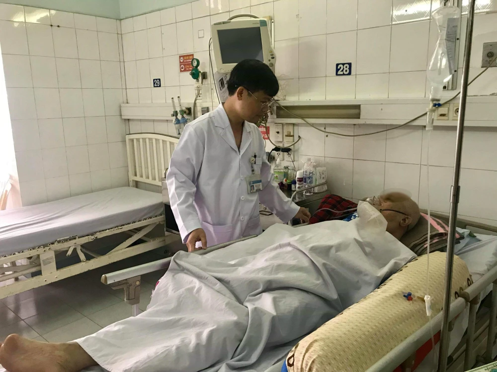 Cụ ông đang được điều trị tại BV Thống Nhất. Ảnh: HOÀNG LAN