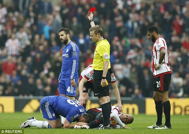 Khi đồng hồ điểm sang phút bù giờ thứ 5, Sunderland gần như trụ hạng khi dẫn trước Chelsea 3-2, từ một pha bóng giữa sân, các CĐV trên sân đều sững sờ trước pha vào bóng của John Terry với Wanbi Kharzi.