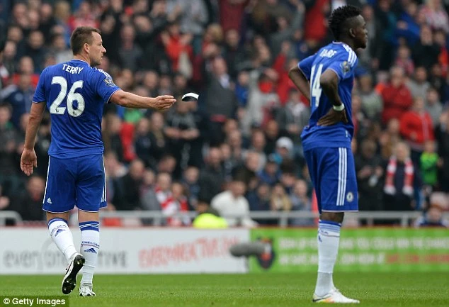 Lập tức một chiếc thẻ vàng được rút ra, đồng nghĩa với việc Terry phải rời sân vì trước đó đã nhận một thẻ vàng. Tấm thẻ đỏ đó đồng nghĩa với việc đội trưởng của Chelsea sẽ vắng mặt trong 2 trận cuối cùng còn lại của đội chủ sân Stamford Bridge và cũng đồng nghĩa với đây là trận đấu cuối cùng của Terry trong mào áo Chelsea.