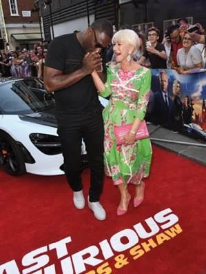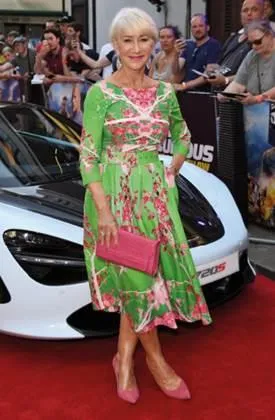 “Mẹ” của hai ngôi sao xuất hiện tại thảm đỏ trong bộ trang phục với màu sắc vô cùng trẻ trung. Nhìn diện mạo này, ít ai biết được nữ diễn viên Helen Mirren hiện tại đã 73 tuổi. Helen Mirren tiếp tục thủ vai người mẹ vui tính và siêu ngầu của “gia đình nhà Shaw” trong phần ngoại truyện sắp tới.