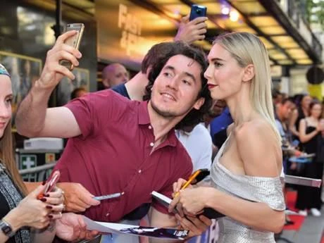 Jason và Vanessa vui vẻ chụp hình và giao lưu cùng fan hâm mộ có mặt tại buổi công chiếu.