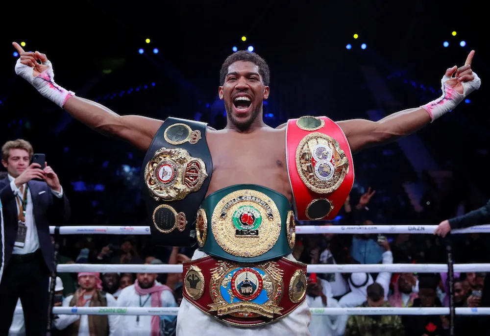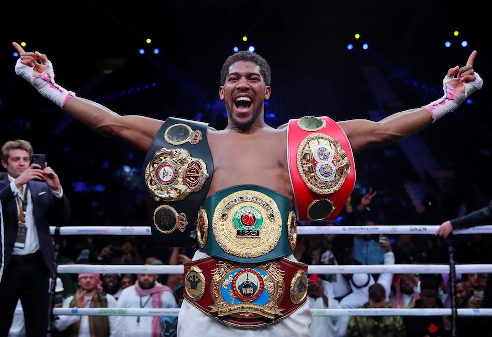 Thắng Andy Ruiz, tay đấm Anthony Joshua ẵm bốn danh hiệu danh giá nhất của quyền Anh hạng nặng gồm IBF (LĐ quyền Anh quốc tế), WBA (Hiệp hội quyền Anh thế giới), WBO (Tổ chức quyền Anh thế giới) và IBO (Tổ chức quyền Anh quốc tế).