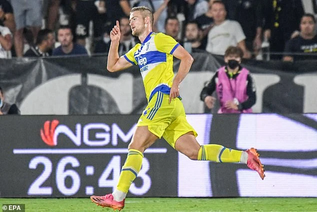 Trung vệ de Ligt mang về chiến thắng đầu tiên cho Juventus khi ghi bàn nâng tỷ số lên 3-2. Ảnh: EPA.