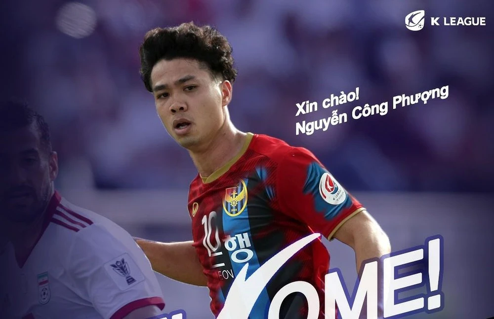 Cùng thời điểm đón chuyến bay sang Hàn Quốc, tiền đạo Công Phượng được trang chủ K-League chào đón bằng tiếng Việt, “Xin chào! Nguyễn Công Phượng” lần đầu đến với giải đấu hàng đầu xứ sở kim chi.