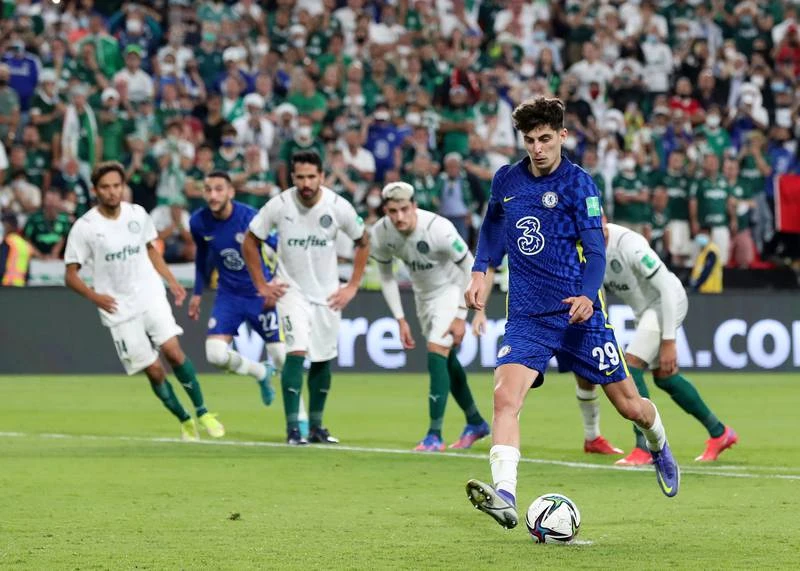 Kai Havertz thực hiệm quả phạt đền ghi bàn thắng vàng cho Chelsea phút 117. Ảnh: Getty
