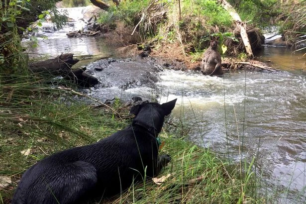 Con chuột túi không mấy e dè trước sự xuất hiện của Jackson và con chó của anh ta. Ảnh: Jackson Vincent