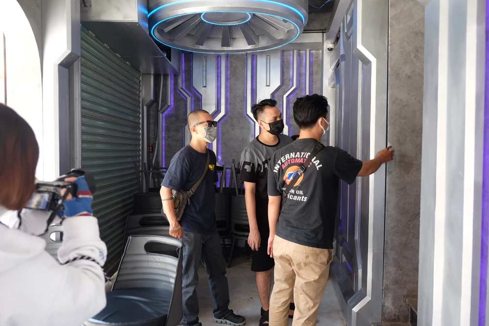Anh Phúc đang cùng đội ngũ thiết kế bàn bạc các phương án sửa sang lại quán.