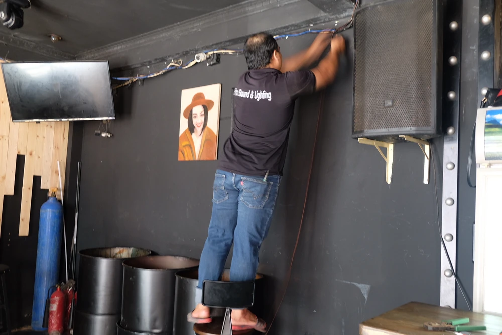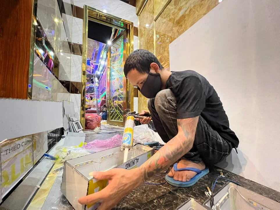 Anh Phạm Khanh, chủ quán Karaoke trên đường Sư Vạn Hạnh đang sửa sang lại quán.
