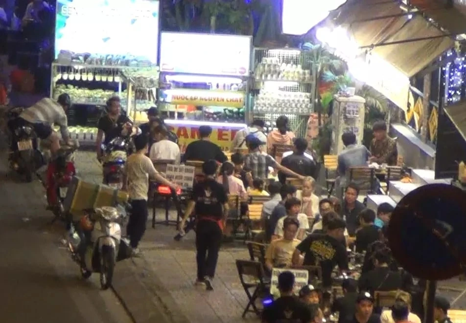 Quán nhậu mở nhạc to, nhân viên còn xuống đường vẫy tay chèo kéo khách.