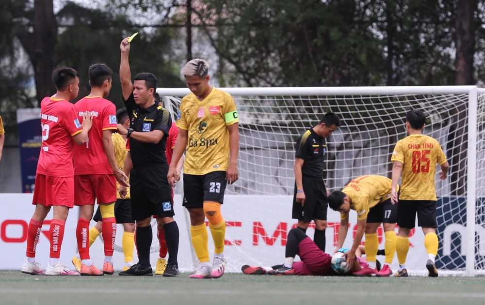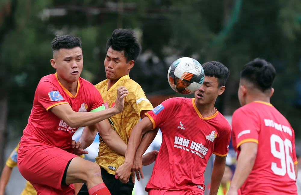 Cựu tuyển thủ Long Giang (đeo băng đội trưởng) của Nghĩa Tình FC. Ảnh: A.P