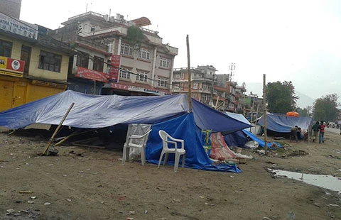 Lều tạm dựng lên khắp Kathmandu. Ảnh: Cẩm Tú
