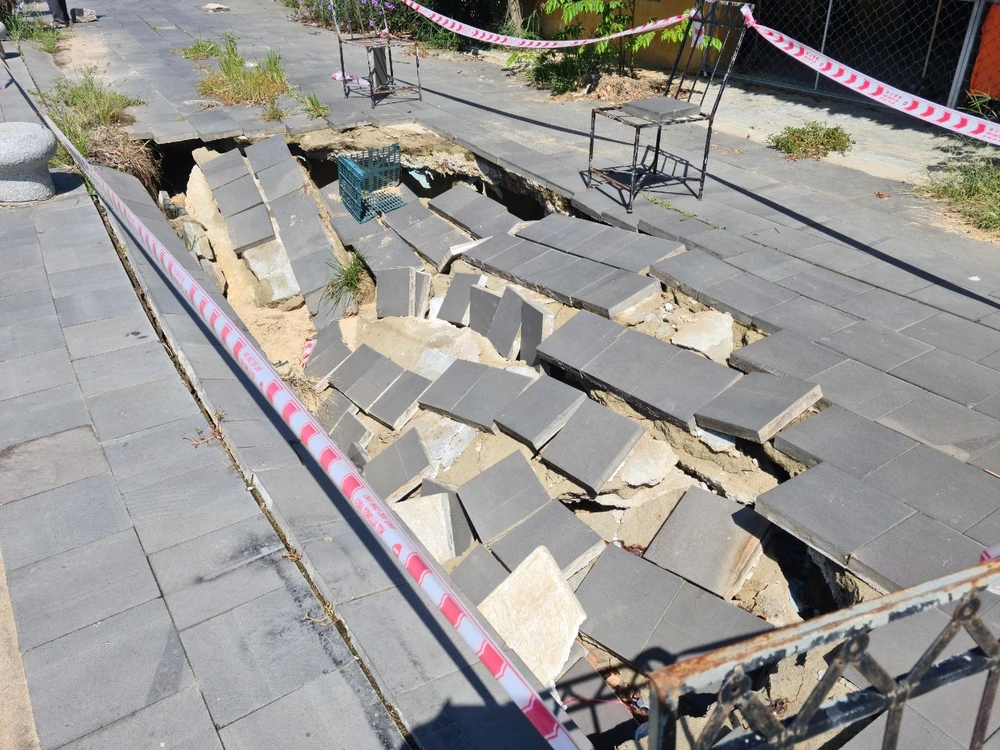 Như PLO đã thông tin, Dự án Kè bảo vệ Khu đô thị cổ Hội An (Quảng Nam) đưa vào hoạt động bốn năm đã xảy ra tình trạng sụt lún. Điểm sụt lún tại lề đường gần số nhà 11, đường Bạch Đằng. Hố sụt lún dài khoảng 6m, rộng gần 2m, sâu hơn 1m.