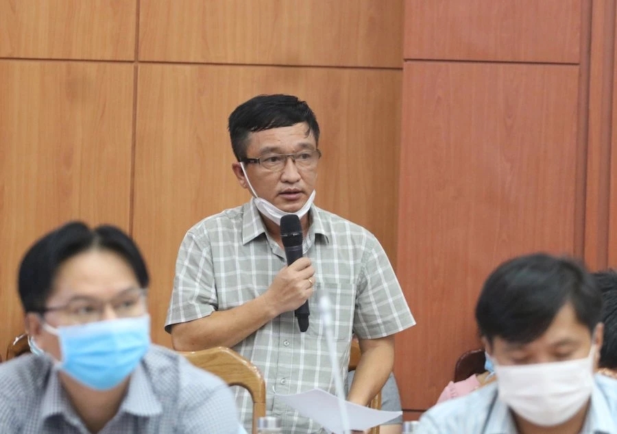 Ông Huỳnh Xuân Sơn, Giám đốc Ban Quản lý đầu tư xây dựng tỉnh Quảng Nam đã thông tin về tuyến kè bảo vệ phố cổ hơn 135 tỉ sụt lún. Ảnh: TN.