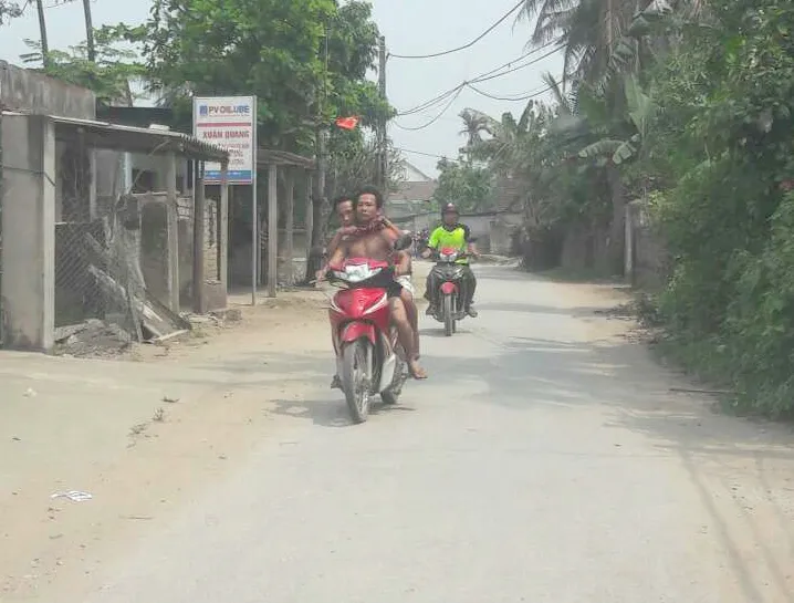 Tuy nhiên, Sơn lại dùng dao khống chế buộc anh Quảng lấy xe máy chở Sơn đi vòng quanh xã. Người dân vô cùng hoảng hốt khi thấy cảnh này.