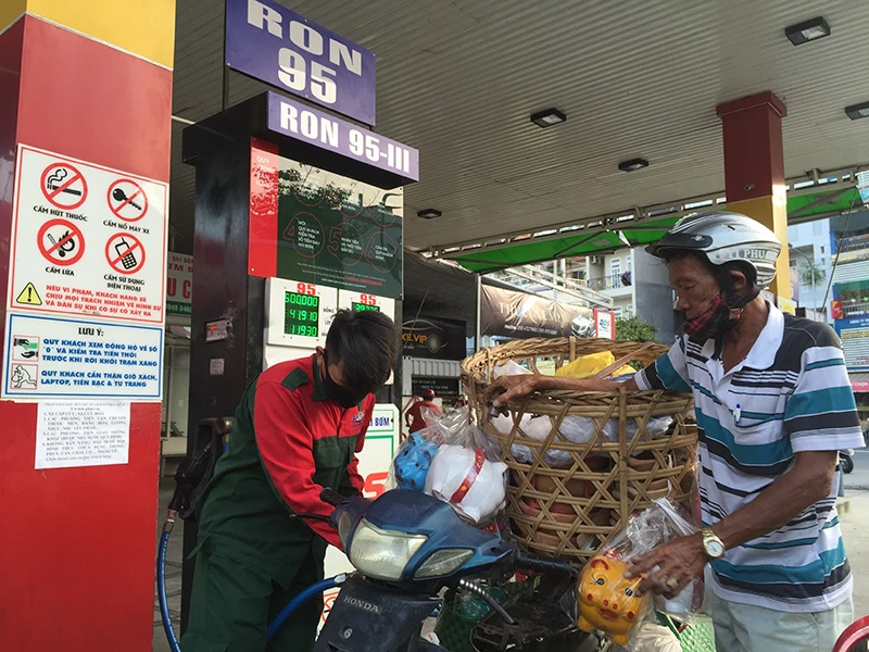 Giá dầu thế giới âm nhưng giá xăng khó giảm mạnh do gánh nhiều loại thuế, phí. Trong ảnh: Khách hàng mua xăng tại TP.HCM. Ảnh: TÚ UYÊN