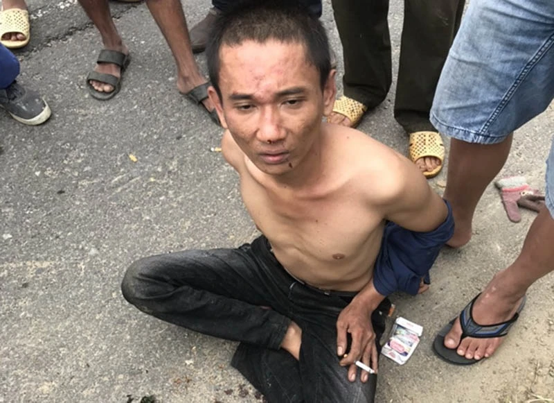 Nguyễn Hữu Trung bị người dân vây bắt. Ảnh: CA