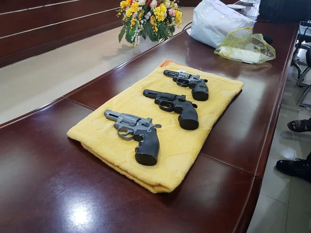 3 khẩu súng được cơ quan chức năng thu giữ sau khi bắt nghi phạm cướp ngân hàng tại Tiền Giang
