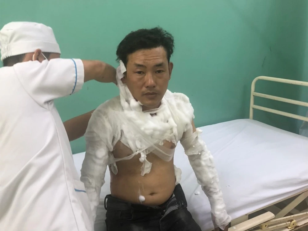 Tài bị bỏng sau khi tự thiêu. Ảnh HT