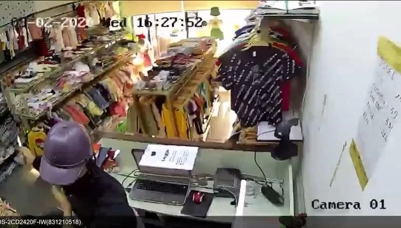 Theo hình ảnh camera ghi lại, khoảng 16h cùng ngày, một nam thanh niên mặc quần thể thao, áo khoác màu đen, bịt mặt, đội mũ bảo hiểm màu tím vào shop quần áo trên đường QL13, phường Hiệp Bình Chánh, quận Thủ Đức vờ mua đồ.
