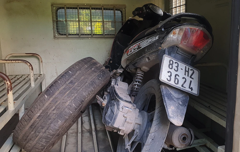 Chiếc xe máy tang vật bị công an tạm giữ. Ảnh: NT