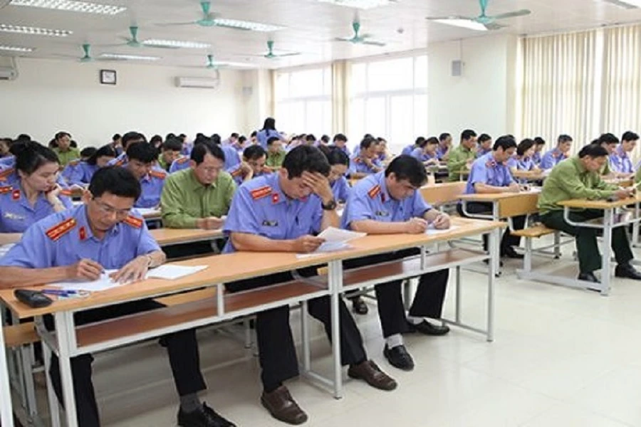 Các thí sinh làm bài thi môn nghiệp vụ. Ảnh minh họa: vksndtc.gov.vn
