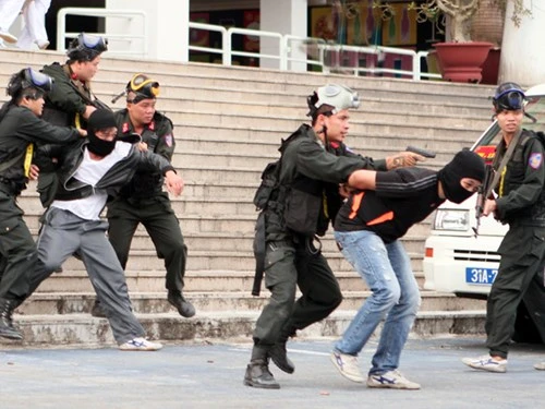 Công an TP Hà Nội diễn tập trấn áp khủng bố, giải cứu con tin tại Sân vận động Mỹ Đình. Ảnh minh họa: anninhthudo