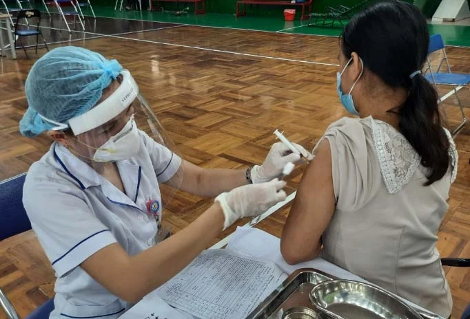 Nhân viên y tế đang tiêm vaccine cho một thành viên tổ COVID-19 cộng đồng ở quận 11, TP.HCM. Ảnh: TRẦN NGỌC