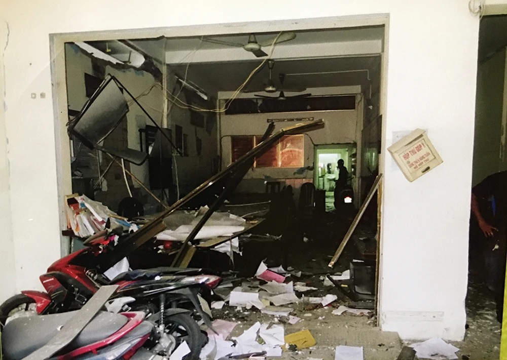 Vụ nổ khiến 2 cán bộ công an cùng 1 người cấp dưỡng bị thương. Ảnh chụp lại từ tư liệu công an.