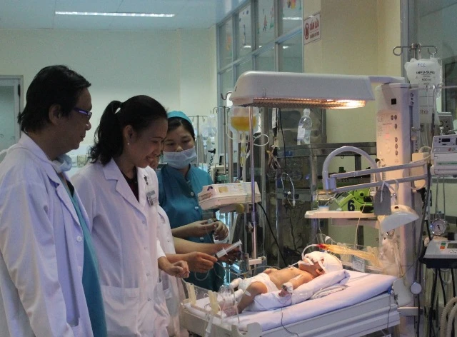 (PLO) - Sáng nay (ngày 8-8), khoa Cấp cứu, BV nhi đồng 1 tiếp nhận bệnh nhi sơ sinh 11 ngày tuổi, con của chị Võ Thị Hồng Duyên (33 tuổi, Vũng Liêm, Vĩnh Long) vì bị vết thương từ xuyên sọ.